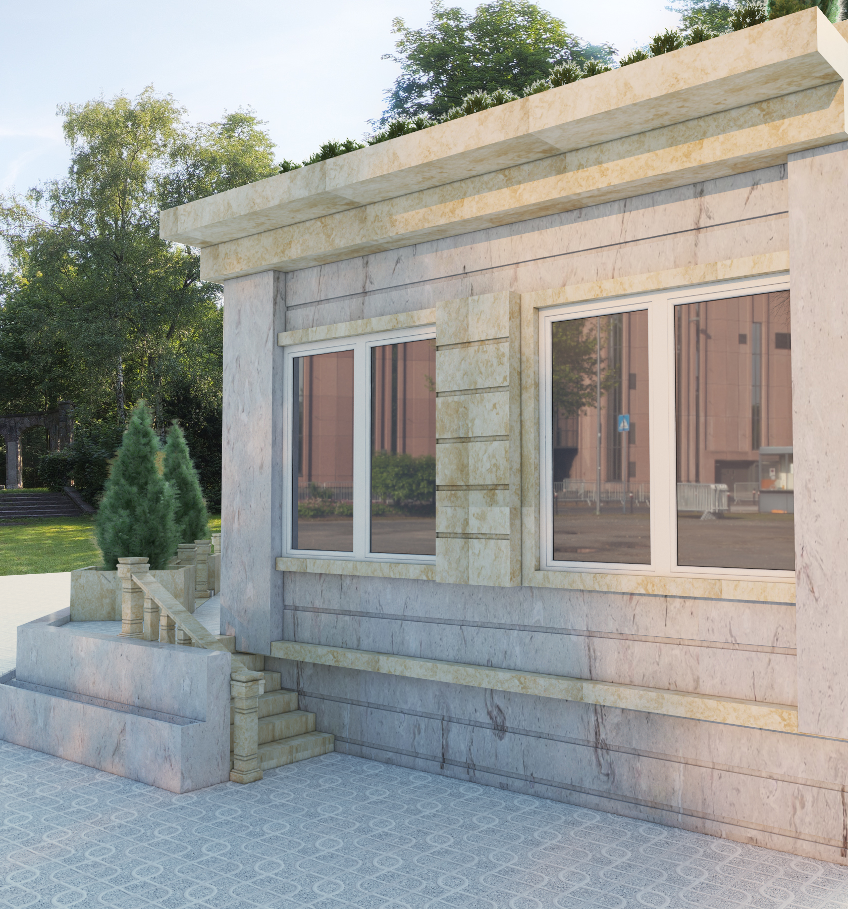 و متریالها معمولی باشد غیر از جاهایی خاص مثل فضای آلاچیق و آبنما ونشیمن دورهمی .